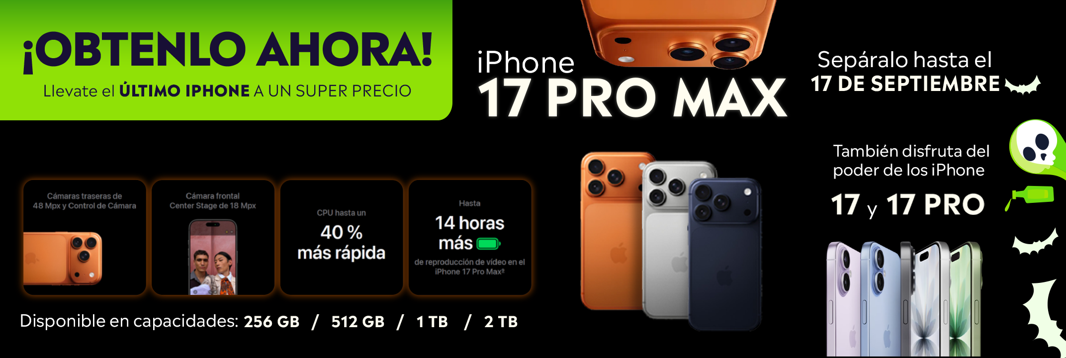 El precio original era: S/ 150.00.S/ 120.00El precio actual es: S/ 120.00.Apple iPhone 17 Pro Max – ESIM 1TB